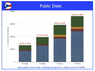 Пуэрто-Рико не подпадает под "девятую главу" Кодекса о банкротстве США, и не может прибегать к некого рода реструктуризации долга, что помогло в свое время Детройту встать на ноги после дефолта в 2013 году. К несчастью, эта территория не подпадает под полное покрытие законодательства США. В то же время, остров не может просить поддержки МВФ, так как не является суверенной страной. Пуэрто-Рико позволил долгу разрастись в годы бума, тогда как кредиторы давали деньги без фактических гарантий со стороны США. Для всего мира Пуэрто-Рико станет примером, когда хедж-фонды и финансовые кредиторы смогут легально диктовать условия суб-суверенному государству, ограничивая социальные обязательства и власть правительства.