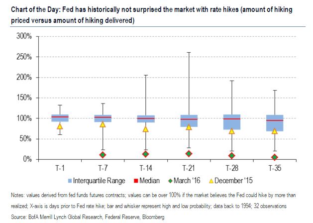 В пятницу команда стратегов по валютному рынку и процентным ставкам Bank of America Merill Lynch заявила о том, что, возможно, пришло время для нового подхода. После изучения данных по фьючерсам стратеги пришли к выводу, что ФРС обычно дает инвесторам большое количество предупреждений перед фактическим повышением.