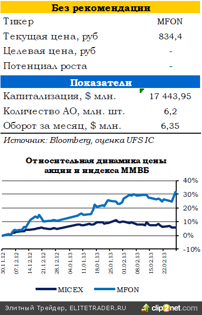 Компания подтвердила намерение выплатить дивиденды по итогам 2012 года. Дивидендные выплаты будут производиться в соответствии с дивидендной политикой оператора, утвержденной в июне 2012 года, а именно: 70% от свободного денежного потока или 50% от чистой прибыли за год при условии сохранения долга на уровне 1,2–1,5 к EBITDA.