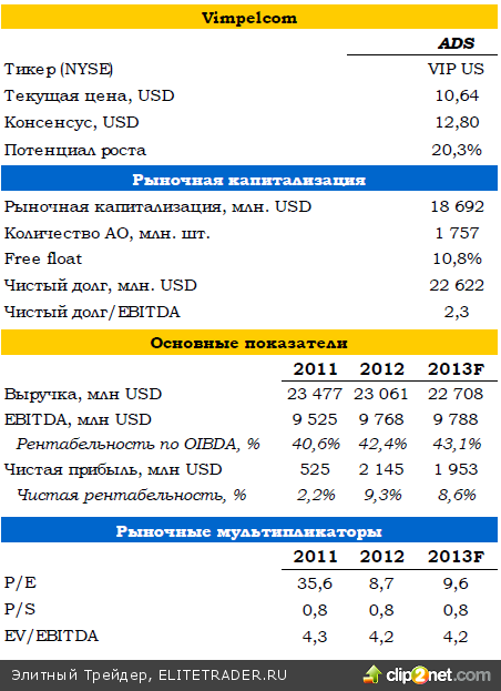 В целом вышедшую отчетность мы оцениваем позитивно. По итогам торгов на NYSE в среду бумаги Вымпелкома подросли на 4,45%, в четверг – еще на 3% до $10,64 за одну ADS. Большая часть роста от опубликованной отчетности уже отыграна, тем не менее, мы ожидаем, что вышедшие данные еще могут продолжить оказывать поддержку котировкам в ближайшие дни.