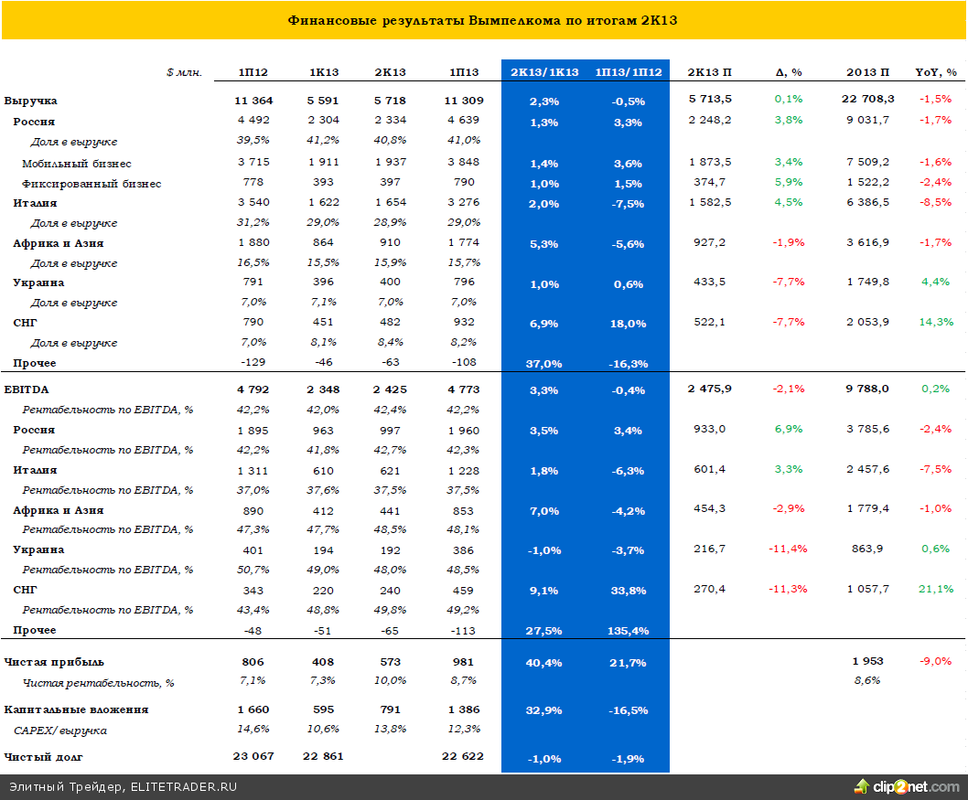 Сильные результаты продемонстрировали страны СНГ: рост выручки в регионе составил во 2К13 17% в годовом сопоставлении, EBITDA увеличилась на 32%.