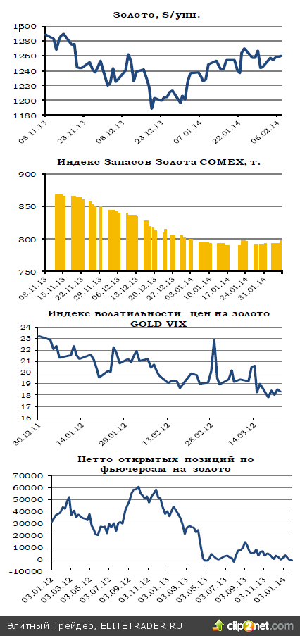 Рост котировок золота, который наблюдался в январе нового 2014 года, утвердил нас во мнении, что рынок находится в начальной стадии формирования нового долгосрочного восходящего тренда, в связи с чем мы рекомендуем открывать длинные позиции по золоту. Полагаем, в течение 2014 года котировки золота могут показать ощутимый рост (порядка 15%) и достичь уровня $1450 за тройскую унцию.