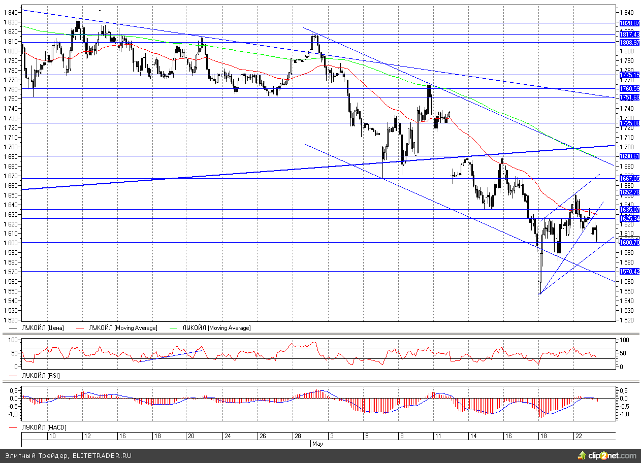 Краткосрочный 2: Шорт при закреплении ниже уровня 1600 с целью на 1560 и стопом на 1625