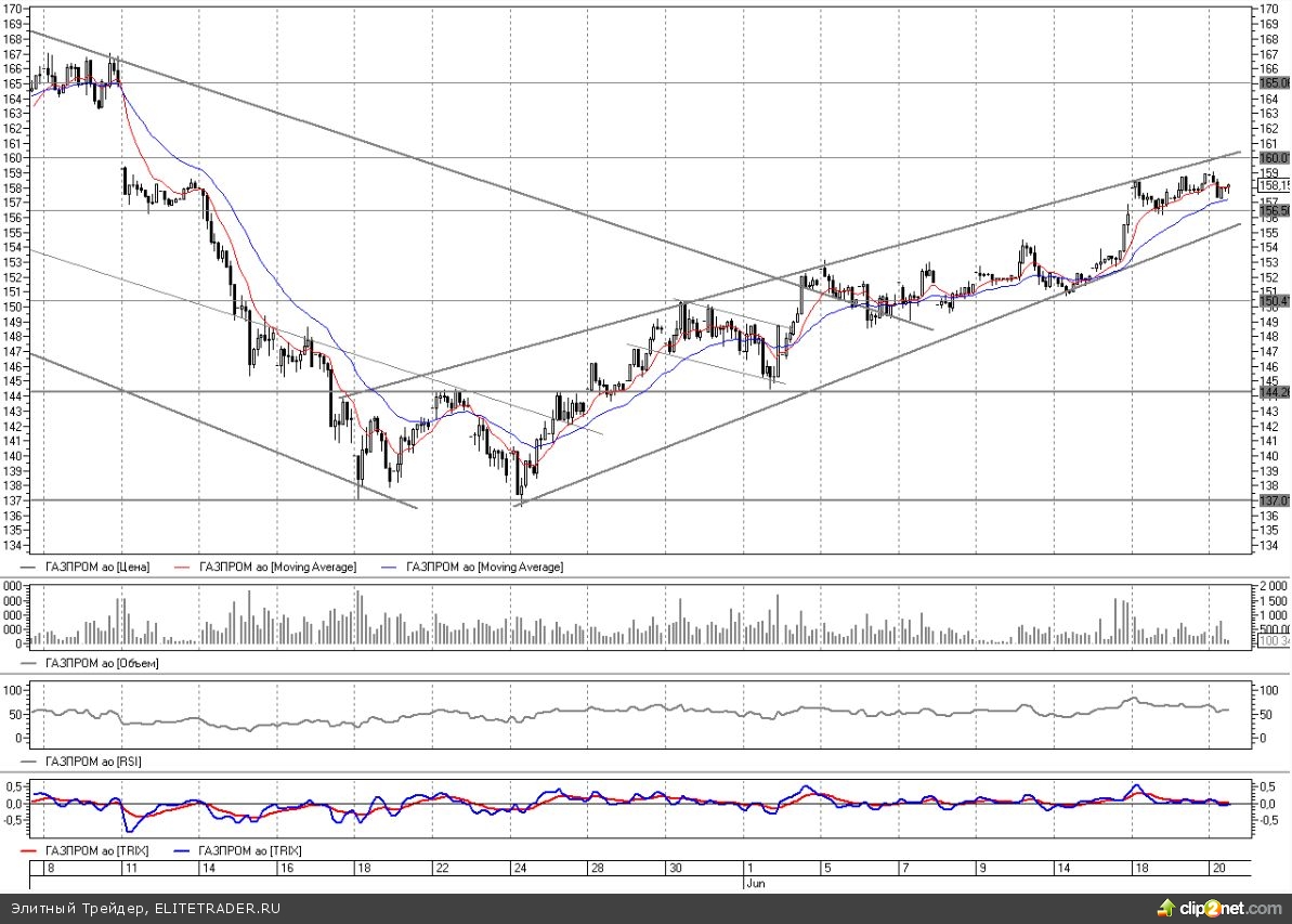 Но в то же время Газпром совсем близко уже от большого дивидендного гэпа на 165, который остался в начале мая после закрытия реестра. Спекулянты рано или поздно постараются его закрыть, организовав общий заход к нему.
