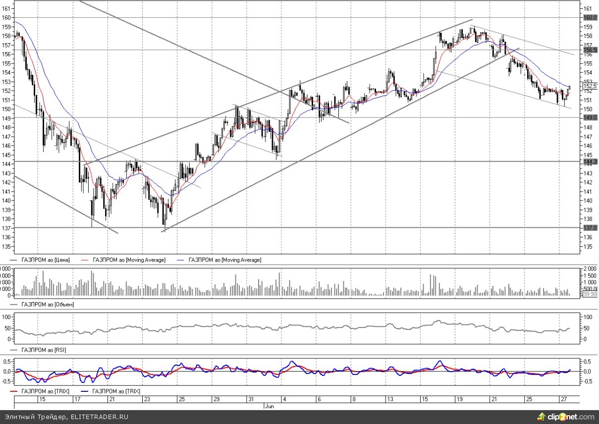 После пробития месячного нисходящего тренда с майских минимумов последовала распродажа. Цена за несколько дней откатилась почти до 150 рублей. На снижении бумага сформировала локальный недельный нисходящий канал, и сейчас пробует оттолкнуться от линии поддержки на 150 вверх.