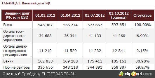 В прошлой квартальной стратегии в части рекомендаций по евробондам российских эмитентов мы рекомендовали сосредоточиться на выпусках высокого кредитного качества в американском долларе, а для этого вполне могли подойти суверенные евробонды. ФРС США сдерживали доходности US Treasuries от роста за счёт операции Twist, которая в части уменьшения доходности облигаций работает эффективнее, чем количественное смягчение. Без дополнительных вливаний ликвидности привлекательность US Treasuries увеличивается за счёт сильного доллара. У нас также не было оснований ожидать, что по России будет в ближайшее время пересмотр её кредитного качества в худшую сторону. В совокупности, всё это давало великолепную возможность надеяться на дальнейшее снижение спреда российских суверенных облигаций к US Treasuries и заработать на рыночном риске, несмотря на то, что цены выпусков Russia обновляли исторические максимумы с начала года. В пользу длинных выпусков выступала и достаточно крутая кривая доходности евробондов России, где по коротким выпускам спред к казначейским облигациям США составлял 150 б.п., а по длинным - 200 б.п. В то же время корпоративные бонды на нашем рынке в целом смотрятся менее привлекательно, т.к. российская экономика выгодно отличается от большинства других стран относительно небольшим размером государственного внешнего долга, однако объём заимствований вовне со стороны корпораций превышает его значение более, чем в 10 раз