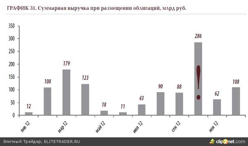 Газпромбанк с его 4-мя размещениями в совокупности на 40 млрд руб.