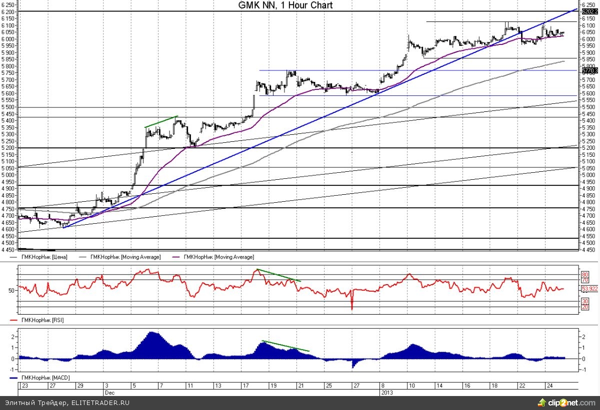 Ближайшая поддержка расположена в районе 5860 руб. Спуск ниже этой отметки будет означать, что последовательная тенденция с все более высокими экстремумами будет нарушена. В этом случае будет открыта дорога к 5700 руб.