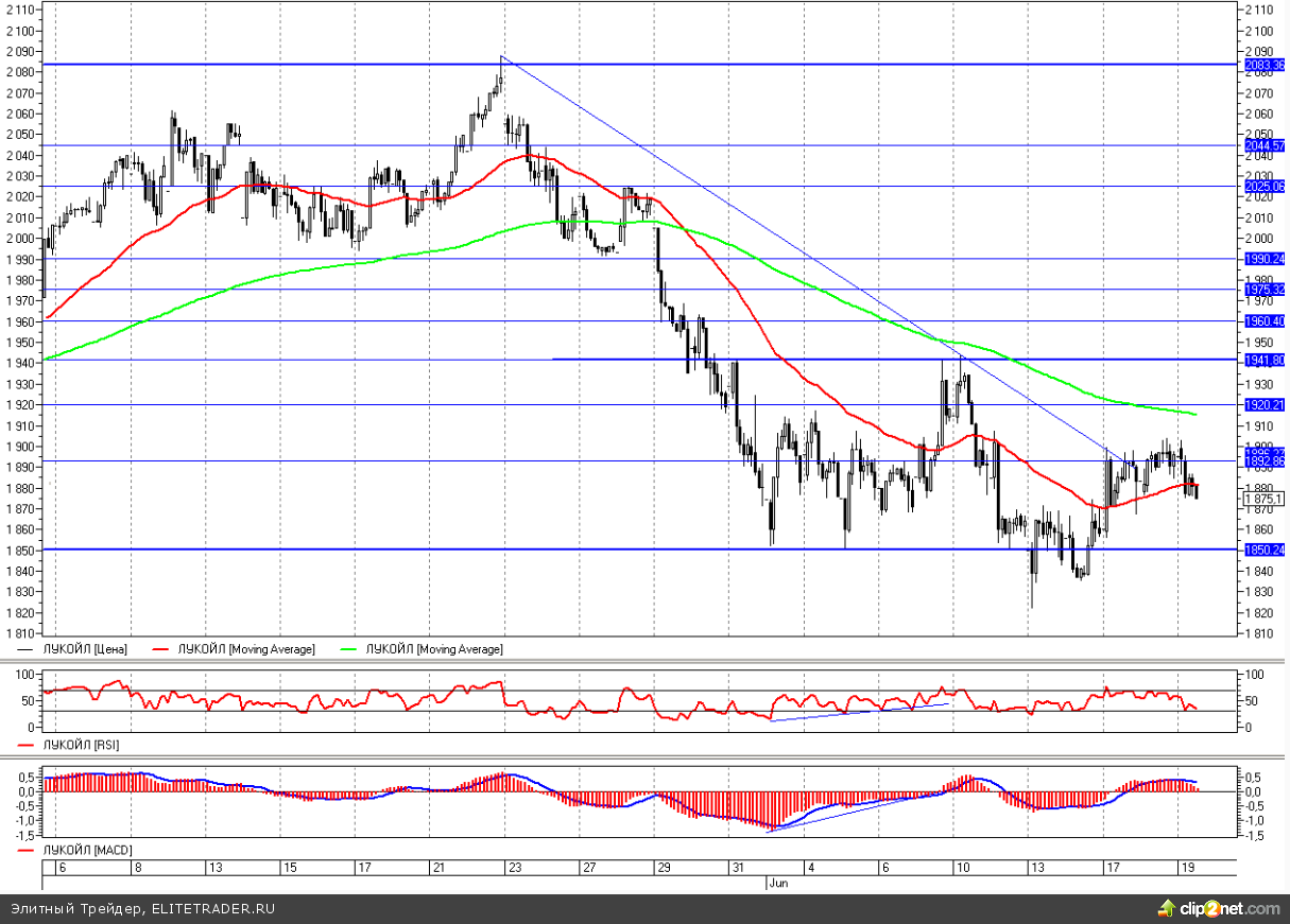 После того как мы поймали почти все снижение в акциях Лукойла от уровня 1990 до 1850, мы ожидали продолжения негативной динамики в случае пробоя вниз уровня 1850. Первый прокол, как и ожидалось, оказался ложным, и новые шорты мы открыли на втором проколе, который, собственно, так же не завершился очередной волной снижения. Быки вновь довольно быстро выкупили бумагу, и в данный момент мы наблюдаем консолидацию в районе уровня 1900. Таким образом, в целом техническая картина остается прежней, после серьезного отката от обновленного среднесрочного максимума в третьей декаде мая, акции Лукойла вернулись к своему ключевому уровню поддержки с осени 2012 года, т.е. к отметке 1850. Пробить ее вниз не удается, и бумага, как это часто бывает, зависла в боковике 1850 - 1940. По всей видимости, в ближайшее время мы вряд ли увидим очередную волну серьезного движения, скорее всего, продолжится динамика в обозначенном диапазоне с периодическими ложными скачками. В этом свете пока останемся без позиций по акциям Лукойла, и подождем формирования более удобной технической картины.