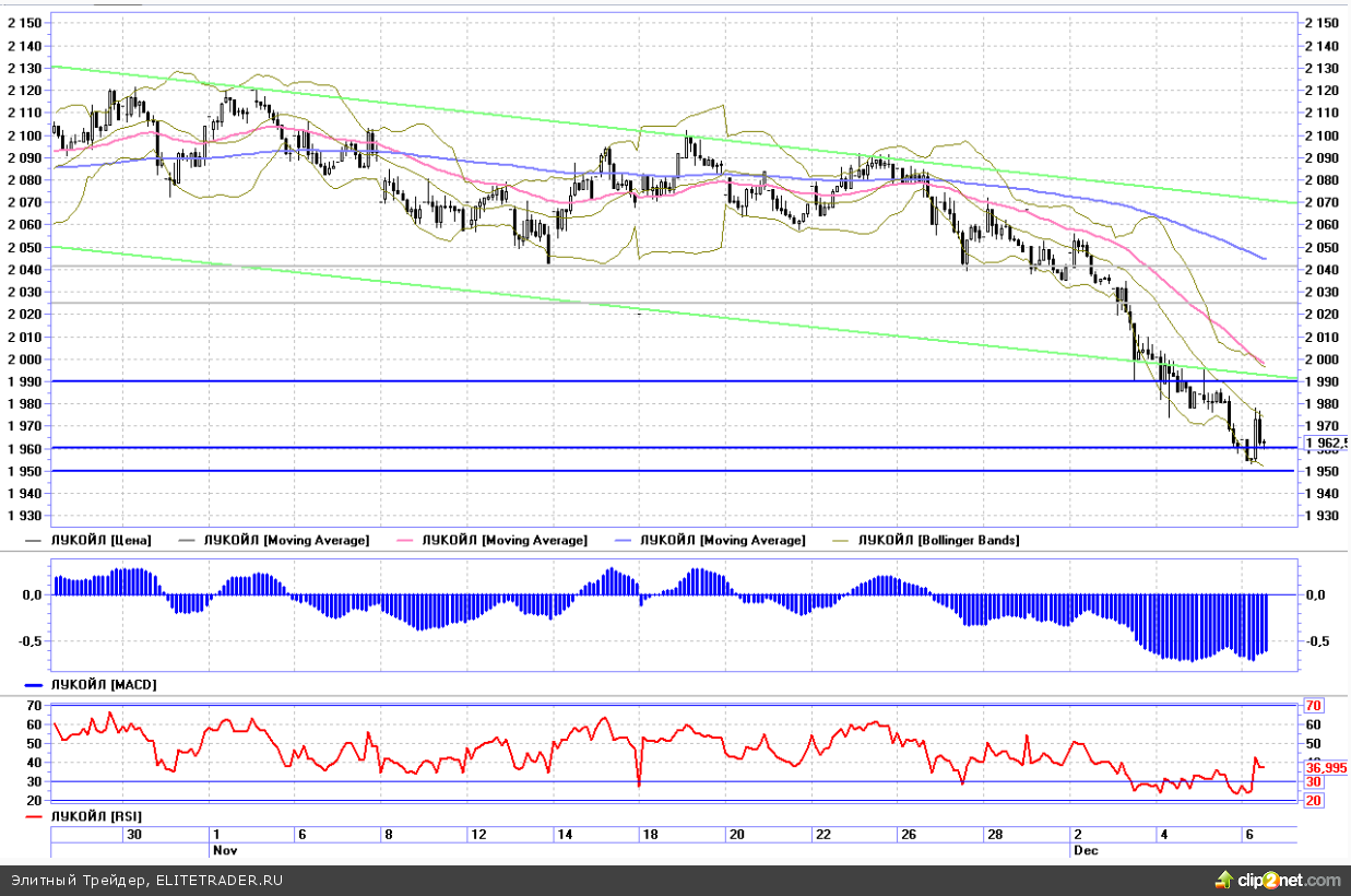 В течение пяти дней подряд мы наблюдали падение без малейших откатов наверх. Сегодня индекс ММВБ также начал день со снижения, что дало нам дополнительный сигнал к закрытию шортов и перевороту в спекулятивный лонг. Общая перепроданность рынка и длительное безоткатное снижение снизило вероятность продолжения падения. В прошлой торговой рекомендации мы открывали шорт на уровне 1970, который закрыли сегодня, перевернувшись в лонг на уровне 1955,5.