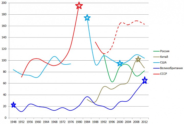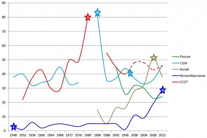 Но Олимпиада не принесла нам 1-е место как в прошлом, потому что сейчас идет борьба других сверхдержав, да и хозяева подтянулись и долго готовились.