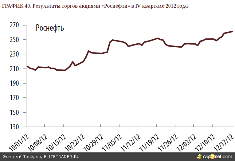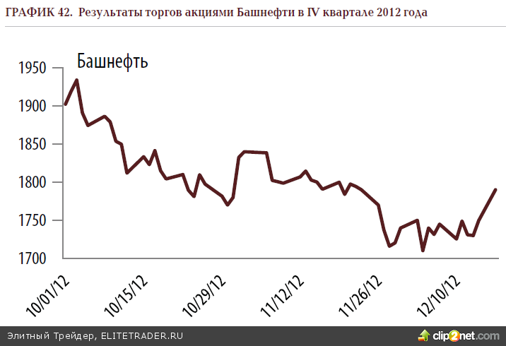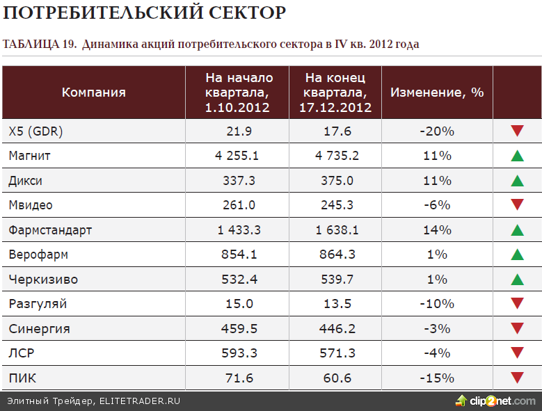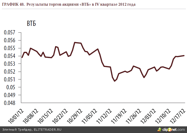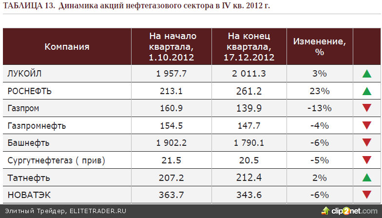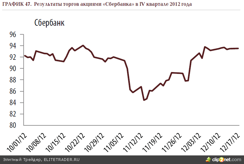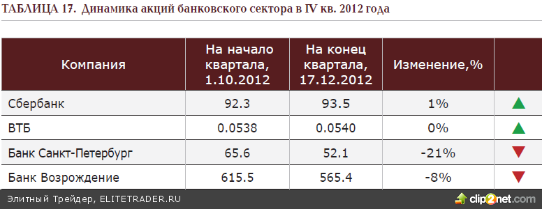 В 4 квартале ситуация на мировых рынках была достаточно стабильной. Несмотря на сохраняющиеся риски (долговые проблемы европейских стран, «фискальный обрыв» в США) серьёзных потрясений не было. Однако отметим, что «кредитный бум» в России пошёл на спад – корпорации стали брать меньше кредитов, да и потребительское кредитование на данный момент имеет ограниченный потенциал роста (да и его доля в общем проценте кредитов не велика). Сами банки признают это - «Сбербанк» прогнозирует снижение темпов роста потребительского и корпоративного кредитования в следующем году и предупреждает, что это может негативно сказаться на финансовых показателях банка