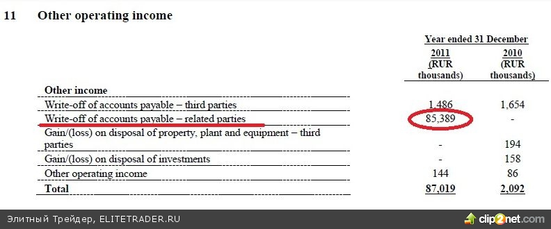 А это почти всё – списание кредиторской задолженности связанной стороной. Взяли и простили долг компании – кто это такой благотворительностью занимается? Кто-нибудь может дать комментарий по этому поводу – это же бред.