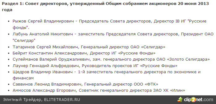 Теперь без фантазий посмотрим, что мы объективно имеем по ОАО «Селигдар».