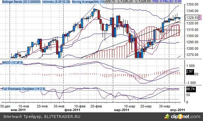 В четверг июньский фьючерс на индекс S&P500 (ESH11) торгуется вяло, ожидая решений ЕЦБ и вечерней статистики.