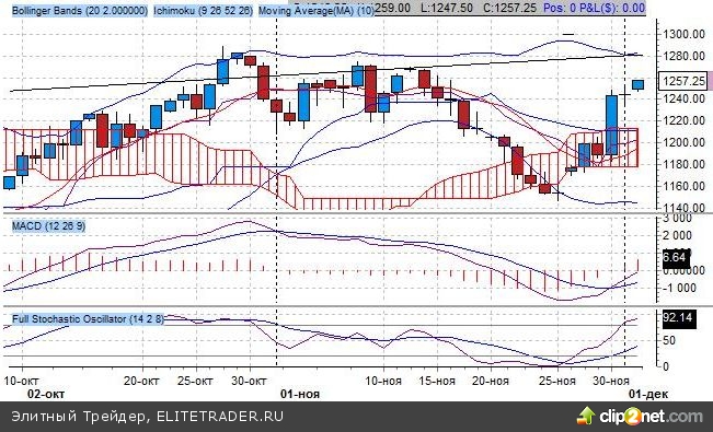 Поддержка фьючерсу пришла со стороны макростатистики: индекс производственной активности в США (ISM Manufacturing) вырос в ноябре до 52.7 пунктов с предыдущего значения 50.8 пунктов. Данные по рынку труда оказались не слишком позитивными.