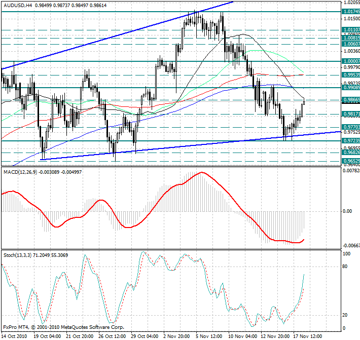 Обратив внимание на 4х часовой график, можно заметить, что на торгах в среду курс валюты нашел сильную поддержку на уровне 0.9725, после чего начались активные покупки австралийского доллара, которые продолжаются до сих пор...