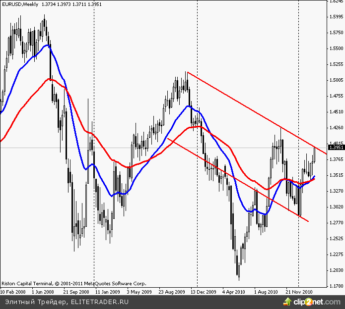 Технически, EUR/USD третий раз коснулся нисходящей линии тренда на недельном графике, что говорит о большой вероятности нисходящей коррекции. Учитывая значимость новостей по американскому рынку труда - откат может быть существенным, если американские данные продемонстрируют положительную динамику. В противном случае, пробой указанной линии легко подкинет евро/доллар к 1.4000 и откроет путь к дальнейшему восходящему движению.
