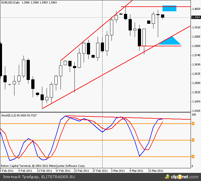 Вчера в первой половине дня рискованные активы отступили на фоне стихийного бедствия в Японии, давая доллару укрепиться. Однако, вскоре можно вновь ожидать повышение цен на нефть, так в скором времени Японии (третье государство по экономической мощи) потребуется нефть для того, чтобы компенсировать потерю ядерной энергии. А, спрос на черное золото в скором времени снова вызовет рост фондовых индексов и риковых активов.