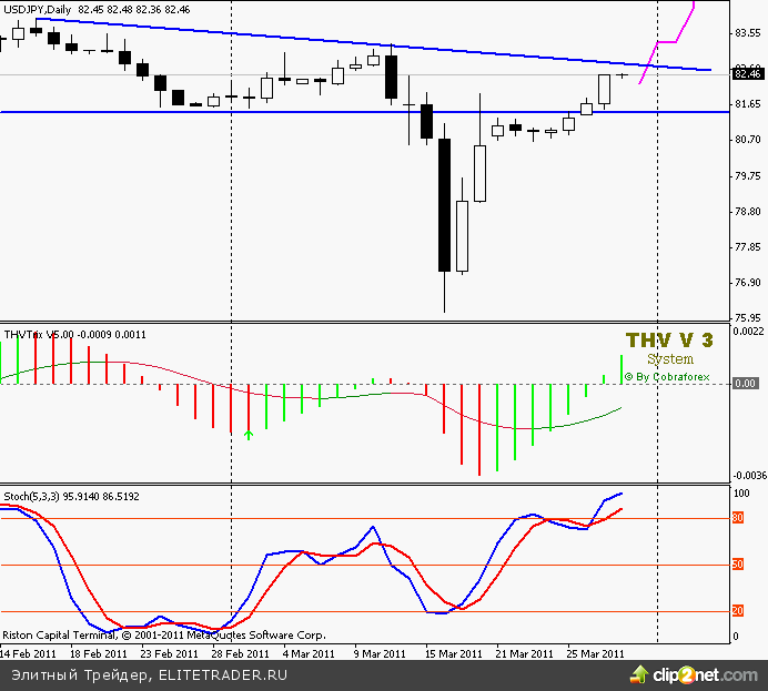 Технически, USD/JPY постепенно идя в рост, заставляет участников рынка выходить из лонгов, тем самым очищая путь путь наверх. И, несмотря на некоторую перекупленность пары, не видать признаков коррекции. Пробитое сопротивление 81.45, хотя и является поддержкой, но туда пара явно не собирается возвращаться в ближайшее время. Следующая цель - февральский максимум - 83.97