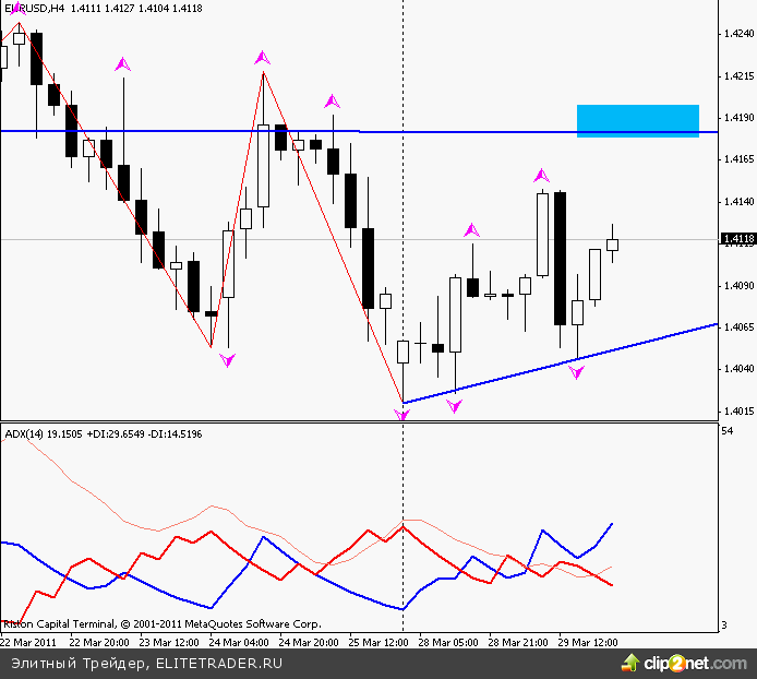 Технически, EUR/USD сходил в коррекцию, отбился от линии поддержки и плавно растет. Трендовый индикатор ADX на 4-х часовом графике говорит в пользу роста. Область сопротивлений - 1.4180/4200. Альтернатива для продаж - ниже 1.4055 с целью 1.4000.