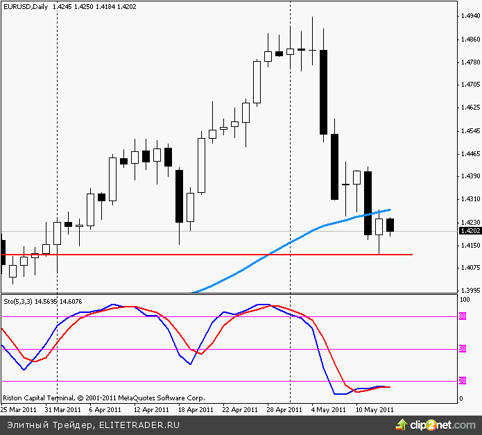 На данный момент ближайшая поддержка проходит в районе вчерашнего минимума 1.4120, а сопротивление - на уровне 55-дневной скользящей средней 1.4270. В более долгосрочной перспективе лишь прорыв выше 1.4550 и максимумов прошлой пятницы 1.4587 позволит паре набрать импульс роста и снова протестировать 17-месячный максимум у 1.4940, отмеченный 4 мая.