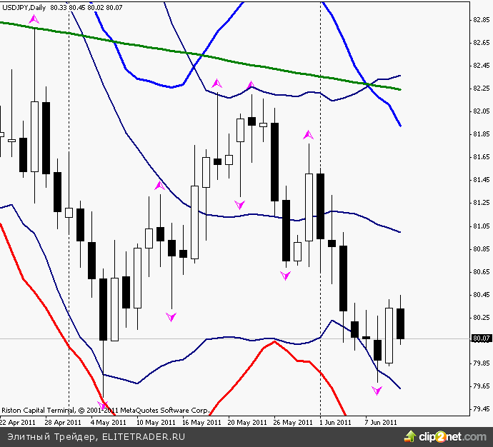 Сопротивление 4: Y82.23/45 максимум 19 мая, 2% конверта скользящей средней, полоса Боллинджера, 200-MA