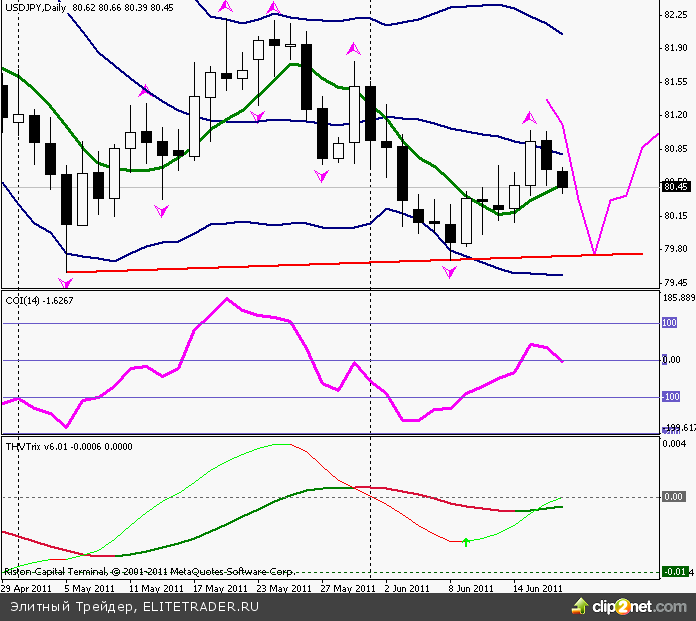 Доллар США вчера решил сделать передышку и уступил завоеванные в первой половине дня позиции своим основным конкурентам. Если посмотреть на индекс доллара, то на дневном графике видна фигура ТА: "флаг", которая считается фигурой продолжения, и подразумевает дальнейшее ослабление доллара в долгосрочной перспективе. С другой стороны - падение доллара с декабря 2010 остановилось в апреле этого года и, в июне, следующий минимум был обозначен выше предыдущего, причем от минимумов происходили значительные отскоки. Закрепление индекса доллара выше 76.40 предполагает дальнейшее укрепление доллара.