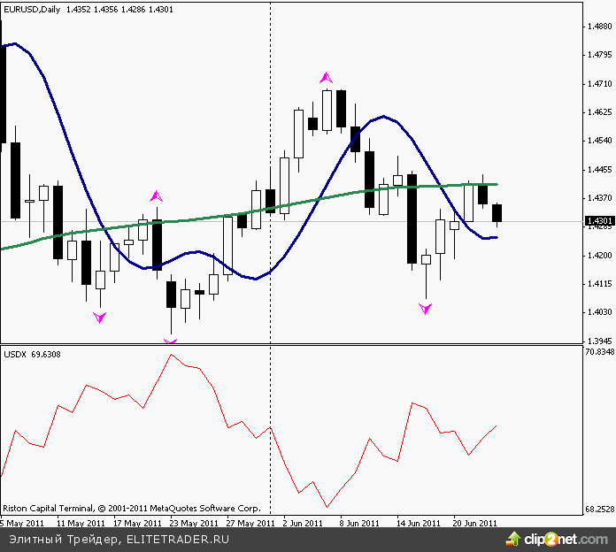 Технически, евро/доллар движется к поддержке 1.4250 асинхронно индикатору доллара. В зависимости от того, пробьет цена этот уровень или оттолкнется от него, следует принимать дальнейшие торговые решения о продажах или покупках. На дневном графике тренд боковой.