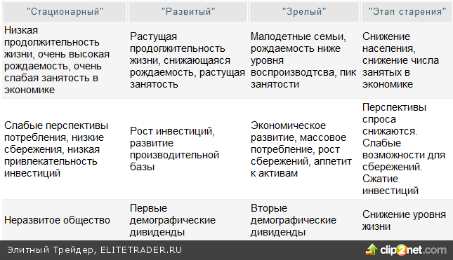 Вот как представляется жизненный цикл демографически обусловленной экономики в исследовании SocGen: