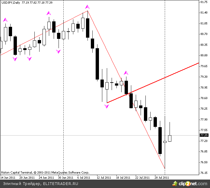 Технически, USD/JPY находится в нисходящем тренде, но интервенция дает возможность заработать и покупать йену начали уже вчера... Не знаю как насчет 80.00, но 79.50 можно подержать...