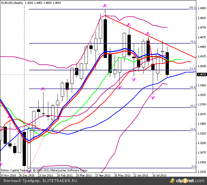 В результате евро/доллар пробил в Америке уровень 1.42, а после закрытия сессии атаковал и 1.41.