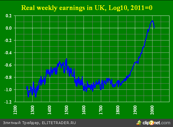 Впрочем, нынче индексы цен – понятие условное: все "инновации", исказившие CPI в США, и в других странах внесены в методики расчёта потребительских цен – причём порой даже следы таких деяний хорошо видны. Так, в Британии издавна применяется индекс розничных цен (RPI) – сейчас он тоже в ходу, несмотря на официальный переход к CPI: с 2000 по 2010 годы CPI вырос на 22%, а RPI – на 31%; это при том, что разница там лишь в корзинах – в CPI не учитываются местные налоги, ипотечные платежи, страхование недвижимости, комиссии агентов и нотариусов и т.д. Но махинации с самим расчётом (геометрическое усреднение, подмены одних товаров другими внутри корзин, вычисление цен на каждый товар и т.д.) имеют место и в RPI – как это сейчас принято у всех в мире. Корректировка этих подлогов даёт весьма занимательные результаты и тут – изучим, к примеру, доходы британцев, тем более, что их статистика есть с очень давних времён: если вычислять их реальную динамику с помощью CPI, то проседание с 2006 года по настоящий момент составит всего 2%; если применить официальный же RPI – то уже 6%; а если очистить инфляцию от махинаций последних десятилетий, то окажется, что реальные доходы британцев были на пике не в 2006, а в 2001 году – и с тех пор упали уже на 24%. Это не просто статистический факт: даже во время наполеоновских войн и континентальной блокады в 1804/14 годах реальные доходы просели лишь на 20% - а круче, чем сейчас, они в последний раз падали в 1761/74 годах (на 27%). Выходит, по последствиям неолиберализм и глобализм вполне сопоставимы с гражданской войной Кромвеля и даже пандемией чумы середины XIV века – и чтоб скрыть всё это, нужно было всего-то "чуть-чуть подправить" инфляцию.