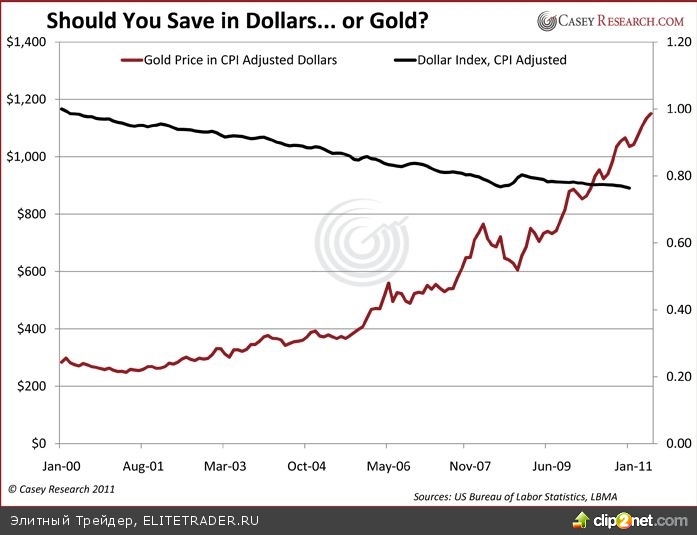 Независимо от того, продолжится ли понижательная тенденция в долларе с такой же скоростью или ускорится, одно ясно: она продолжится. Вы обязаны разместить часть ваших сбережений в золоте.