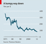 Основатели Бреттонвудского режима полагали, что плавающие курсы будут угрожающе нестабильными. Но Фридман утверждал, что, в условиях проведения разумной политики, спекулянты выступят в роли стабилизующей силы, что предотвратит валюты от чрезмерного отклонения от их настоящей стоимости. На самом деле, валютные курсы оказались гораздо более волатильными, чем предполагал Фридман. На графике отражено движение доллара против иены: несмотря на то, что тренд является нисходящим, замечено несколько резких волн коррекции. Кроме того, приверженность плавающим курсам не помешала Центробанкам провести ряд интервенций; последняя случилась четвертого августа, когда японцы попытались ослабить национальную валюту. Их усилия сошли на нет, когда агентство Standard & Poor понизило кредитный рейтинг Америки, что вновь обвалило доллар.