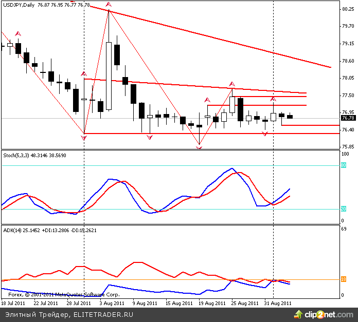 Неспособность пробиться выше 77.00 может опустить пару к нижней границе нисходщего часового канала на 76.45.
