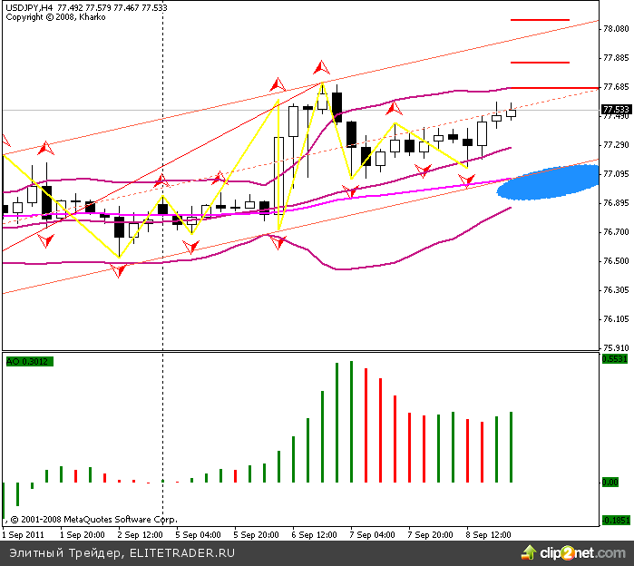 Технически, USD/JPY движется в восходящем канале на 4-х часовом таймфрейме. Область поддержки 76.90 - 77.15. Сопротивления - 77.70, 77.85, 78.15