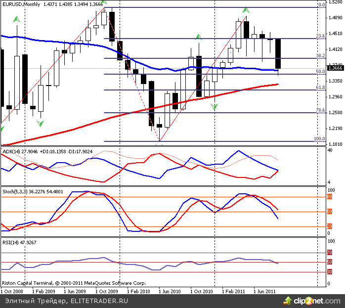 Технически, EUR/USD, нашел поддержку на 50.0% коррекции Фибоначчи от максимумов 2009 года до минирмумов 2010 около 1.3500, и рикошетом отскочил к МА 20 на графике месячного масштаба. Однако, индикаторы предупреждают, что пара может продолжить падение, да и основные экономические перспективы для зоны евро ухудшаются.