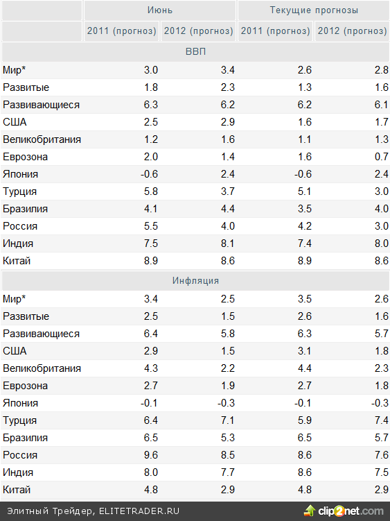 * Веса в соответствии с величиной номинального ВВП. Данные за июнь согласно исследованию за 3 квартал 2011 года "Трудный путь наверх" (взгляд HSBC на развитие мировой экономики в третьем квартале 2011 года), HSBC Global Research, Macro Global Economics Q3 2011. Исследование датировано 29 июня 2011 г.