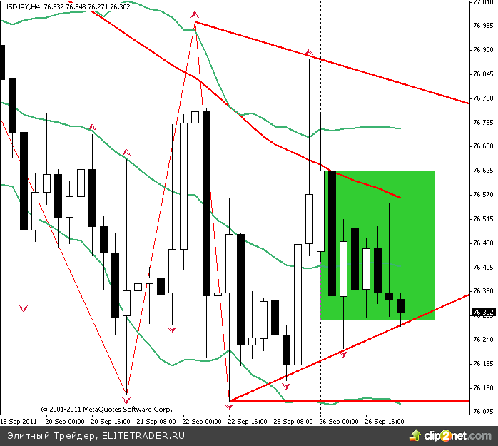 Технически, по USD/JPY ситуация не претерпела значительных изменений, однако на 4-х часовом графике можно наюлюдать фигуру свечного анализа «медвежья контратака». Последняя свеча (текущая) говорит о возможном продолжении движения вниз, тестирование линии 76.26, а затем недавнего минимума 76.09. Ближайшее сопротивление 76.40.