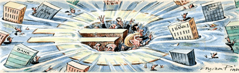 Что же делать? Во-первых, в октябре Еврозона должна одобрить изменения к Европейскому фонду финансовой стабильности (будем надеяться, что все страны проявят должное благоразумие). Таким образом, сумма фонда увеличится до 440 млрд. евро. Кроме того, он сможет финансировать банки и покупать облигации проблемных государств на открытых рынках. Но его возможности все равно сильно ограничены. Еврозоне нужна базука побольше. Обсуждается пять различных планов действия. Среди них расширение финансовой мощи EFSF путем предоставления гарантий а не займов, или заимствований у Европейского центрального банка и на открытом рынке. Но если нужно действовать безотлагательно, как сейчас, то единственным источником финансирования с достаточным количеством денег является центральный банк.