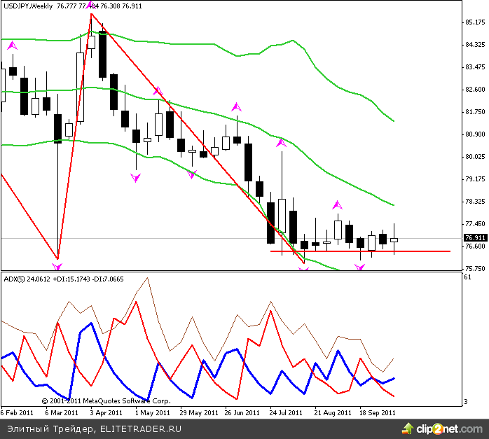 Технически, по USD/JPY сохраняется боковой тренд, идёт внутрення коррекция вверх на недельном фрейме к средней линии Боллинджера. На часовке - восходящий отскок. Предполагаю рост к сопротивлению 77.40. Поддержки обеспечит Банк Японии.