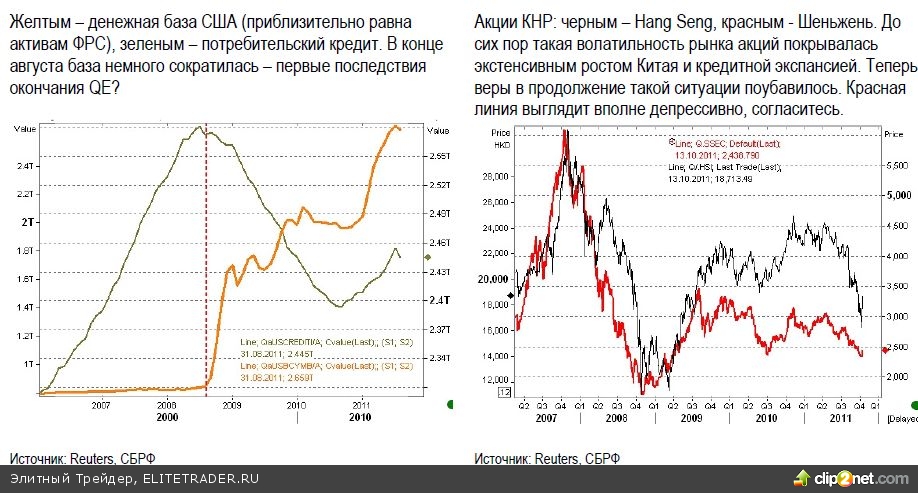 В Европе опять сплошные победы на словах: обещано нужное голосование в Словакии*, обещана в n-ный раз (от "Меркози") рекапитализация банков - банков, которые, вообще-то, четвертый месяц подряд практически отрезаны от источников краткосрочного рефинансирования, а в Китае - замедление роста экспорта до самого низкого значения за 7 месяцев (плюс - впервые - снижение цен жилья) и перспектива торговых войн с США на фоне одобрения Сенатом билля о неправомерном контроле некоторых стран за валютным курсом.