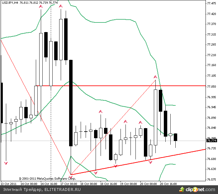 Технически, USD/JPY упала до 76.77 после резкого роста выше 77.00. Это свидетельствует о том, что данная пара предпочитает спокойную размеренную торговлю в узком диапазоне. А при выходе из диапазона 76.70 - 77.05 - стремиться в него вернуться.