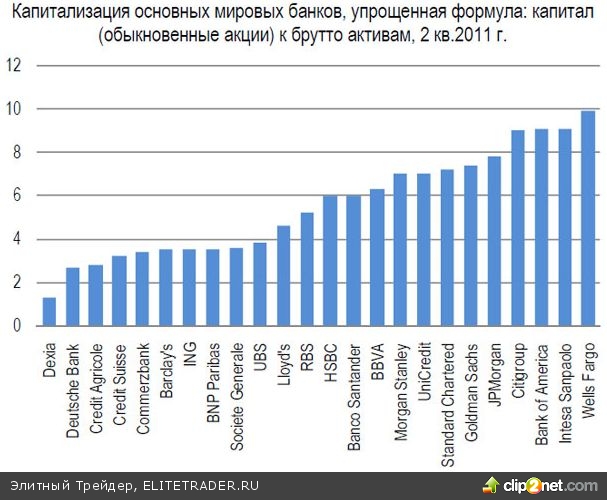 Пока можем предложить такой график, наглядно иллюстрирующий состояние капитализации банков в ЕС и США: