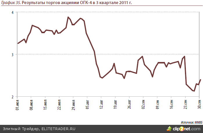 Одними из аутсайдеров оказались акции ФСК ЕЭС(-37%). Напомним, в планах при- ватизации правительства РФ в 2012 году продать 4.11% акций ФСК ЕЭС. Текущая не- благоприятная ситуация на рынке может отодвинуть сроки приватизации компа- нии, что снижает её инвестиционную привлекательность.