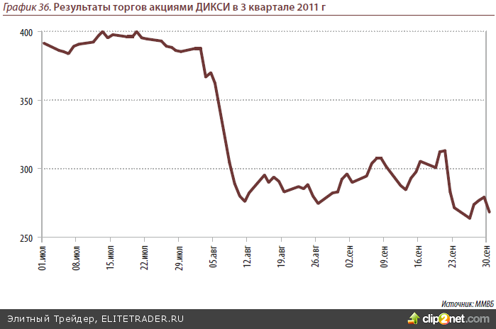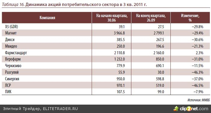 Потребительский сектор традиционно – защитный в случае падения фондовых рынках. Но в ходе августовского падения отраслевой индекс был одним из аутсайде- ров (-17%) . На наш взгляд, это связано с низкой ликвидностью бумаг. Сейчас многие акции сектора были перепроданы находятся на привлекательных для покупок уров- нях. Наиболее пострадали в августе акции Магнита(-30%). Магнит – лидер по тем- пам роста (за 8 месяцев этого года были открыты 604 магазина) и эффективности в секторе, мы ожидаем технический отскок в акциях компании. В секторе ритэйла выделим также Дикси, X5 Retail Group и М’видео. На наш взгляд, наиболее привле- кательны для вложений акции ДИКСИ – компания в последнее время активно раз- вивается. В планах компании за 2011 год открыть более 150 магазинов. Кроме того, в июне ДИКСИ присоединила Викторию, мы ожидаем синергетического эффекта от объединения двух компаний (как минимум снижения затрат на логистику и транс- портные издержки, а также получение более выгодных оптовых закупочных цен).