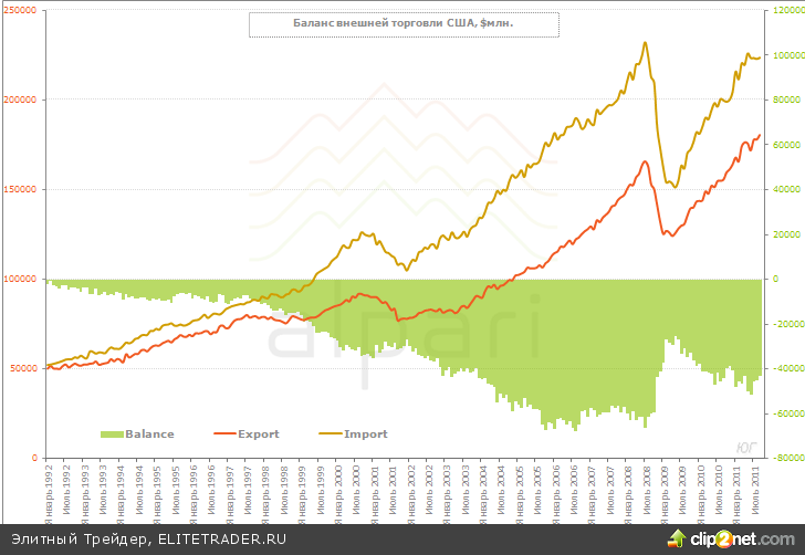 Торговый баланс США в сентябре продолжил улучшаться, дефицит сократился до $43.1 млрд. – минимальный с начала года дефицит. Экспорт вырос на 1.4%, импорт вырос 0.3%. За последний год экспорт товаров вырос на 18.2%, импорт товаров вырос на 13.2%. В сентябре баланс улучшался за счет экспорта, импорт в США за последние месяцы практически не меняется. Экспорт товаров в Еврозону за последний год вырос всего на 9.6%, импорт вырос на 15%. Достаточно сильно ухудшилась ситуация в торговле с Германией, экспорт товаров в которую за последний год сократился на 2.1%, а импорт вырос на 22.8%, зато в Великобританию экспорт американских товаров за год вырос на 33.6%, а импорт США сократился на 2.2%. Хотя экспорт американских товаров в Китай за последний год вырос на 17.3%, а импорт из Китая вырос только на 3.5%, дефицит остался без изменений и составил $28 млрд. За последний год импорт нефти сократился на 4.3%, цена снизилась с $102.6 за баррель в августе до $101 за баррель в сентябре. С одной стороны отчет неплох, но с другой, есть один очень любопытный момент, который заключается в том, что 3/5 всего месячного прироста экспорта обеспечило немонетарное золото, экспорт которого в сентябре взлетел на 49%, к августу и более чем в 3 раза относительно сентября прошлого года. Отчасти такая динамика, конечно, обусловлена ростом цен на золото, но только отчасти и вряд ли это может говорить об улучшении ситуации в производстве, экспорт компьютеров сократился