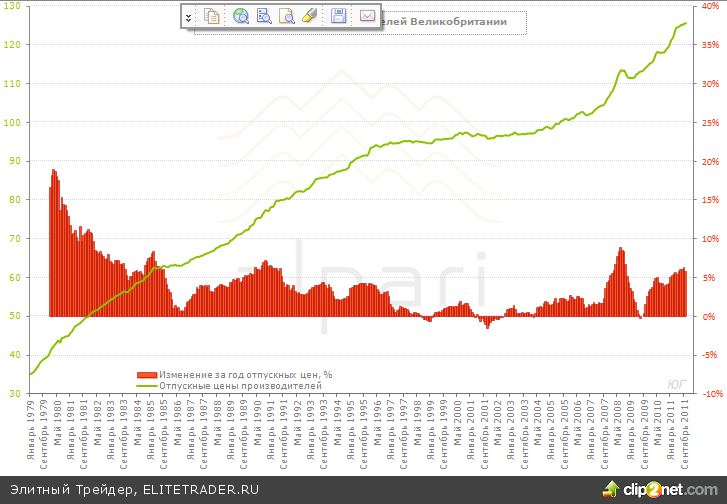 Производственные цены в Великобритании стабилизировались, закупочные цены в октябре снизились на 0.8%, отпускные цены не изменились, годовой прирост цен составил соответственно на 14.1% и 5.7%. Без учета продуктов питания отпускные цены снизились на 0.1%, годовой прирост замедлился до 3.4%. За последние 12 месяцев на 15% выросли отпускные цены на нефтепродукты, на 9% выросли цены на продукты питания, на 6.2% прибавили цены на одежду, зато компьютеры и электроника подешевели на 0.6% (но это результат гедонистики). Пока общие годовые темпы роста отпускных цен остаются высокими, но краткосрочные темпы роста цен существенно замедлились, за август октябрь к маю-июню отпускные цены росли годовым темпом 1.9% годовых (минимум за год). Банк Англии таки дождался своего счастья... )