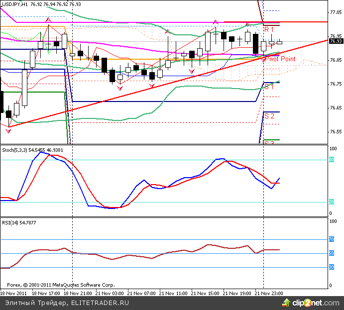 Технически USD/JPY предпринимает попытку прорваться выше 77.00. Если ей это удасться, то быки постараются удержать пару выше этого уровня. В целом, ситуация с парой остается без изменений — она эпизодически стабилизируется в некоторых диапазонах.